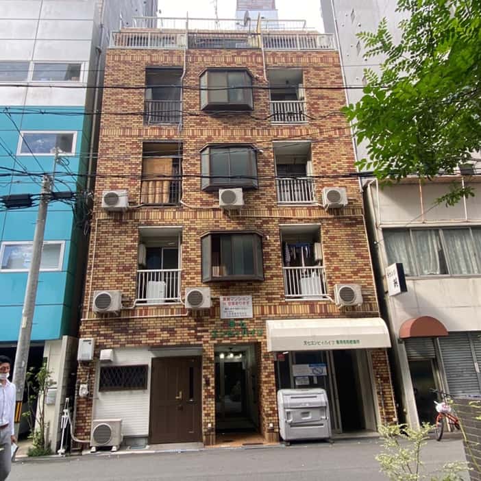 こちらは実際に弊社が過去に施工したマンションです。築45年とかなり古く、経年劣化による退色、防水層の劣化などが見受けられました。 空室が目立ち始めている影響で「大規模修繕を実施するお金の余裕が無い」とお悩みを持たれておりました。