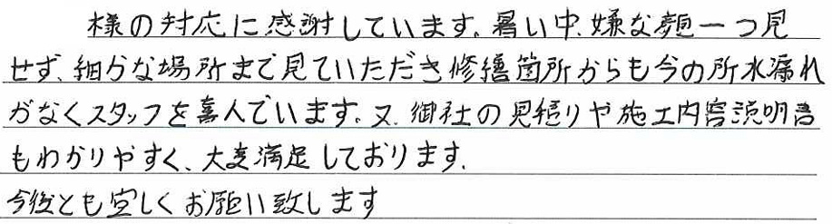 又、御社の見積もりや施工内容説明書も分かりやすく、大変満足しております。