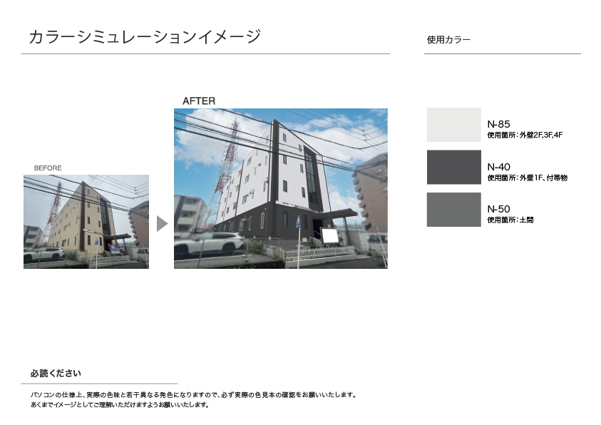 塗装後のイメージを専用ソフトで作成することで、完工後に「イメージと違う」等のトラブルを未然に防ぐことが可能に。