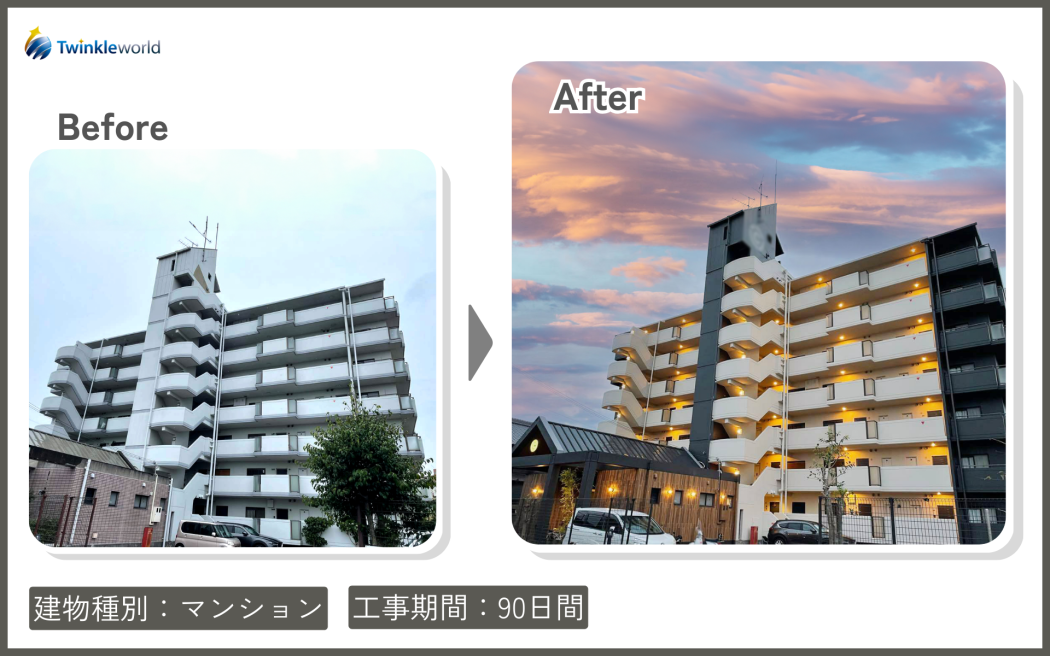 トゥインクルワールドはマンションの大規模修繕・ ベランダ・防水工事は自社管理の施工で低価格・高品質な施工を行なっております。大規模修繕工事や関連する情報に関して分かりやすく解説しています。